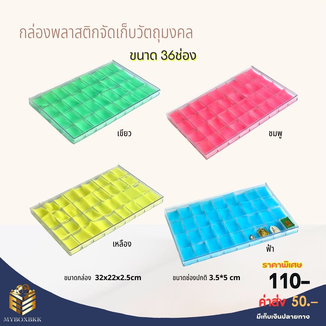 1ชั้น18ช่อง คิ้วทองกำมะหยี่กระจก สีน้ำเงิน